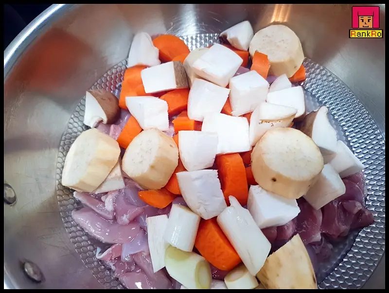 ▼ 대파와 양파를 뺀 모든 야채 (당근 버섯, 고구마)를 넣어 주세요.