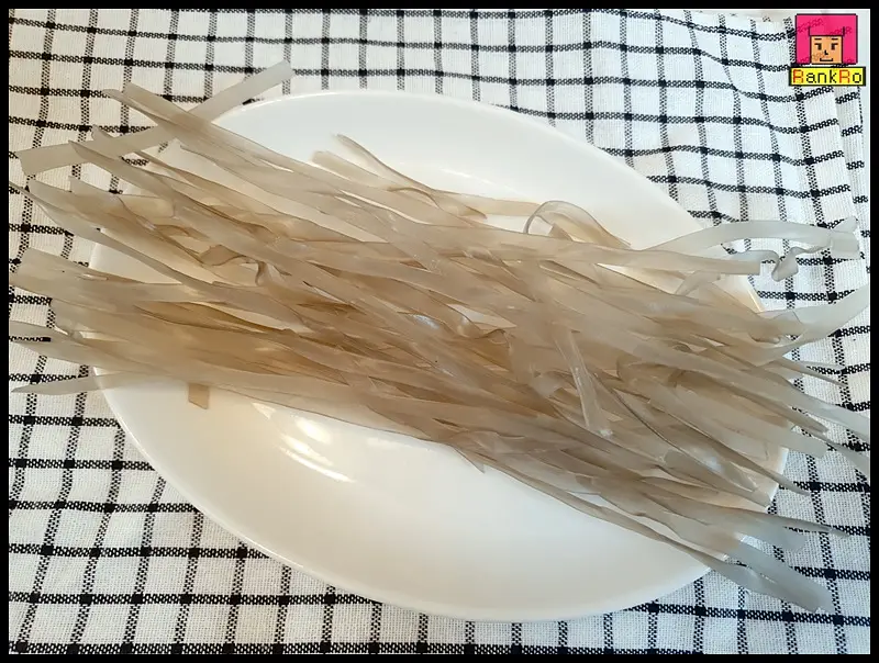 ▼ 안동 찜닭레시피에 들어가는 고구마, 당근, 버섯, 대파, 양파, 납작 당면을 준비했습니다. 기호에 따라 찜닭에 들어가는 재료는 다양한 재료를 추가하시면 좋습니다. 당면은 미진근한 물에 담가 불려 주세요.