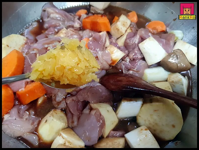 ▼ 닭다리살 닭정육 찜닭 레시피에 다진 마늘 1큰술을 넣어 주세요.