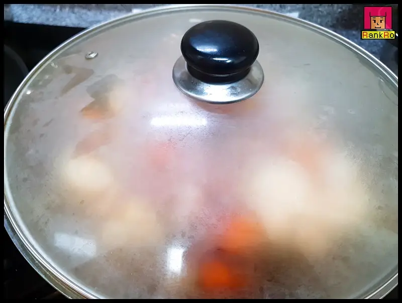 ▼ 모든 재료를 다 넣었다면 뚜껑을 닫고 센 불에서 끓여주세요. 센불에서 끓이다가 끓어오르면 중 약불로 줄여 10~15분 정도 더 끓여 주면 됩니다.