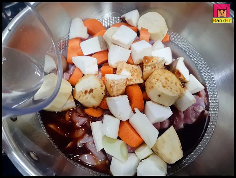 ▼ 안동 찜닭레시피에 모든 재료를 넣었다면 물 2/3 ( 150ml )를 넣어 주세요.