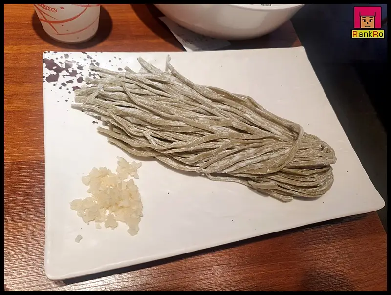 ▼ 샤브등심과 관자, 미나리, 버섯을 샤브로 맛있게 먹은 후 미나리면을 넣어 얼큰하면서 칼칼한 칼국수를 끓여 먹었었습니다.