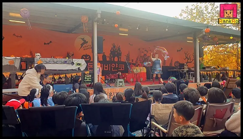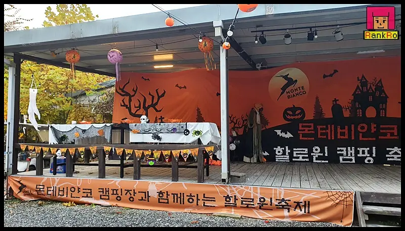 ▼ 많은 이벤트가 있는 몬테비얀코캠핑장 메인무대를 멋지게 꾸며놓은 할로윈캠핑축제~ 키즈캠핑장답게 특별한 날마다 캠핑장에서 공연과 행사를 진행하다 보니 공연장을 따로 준비해 놓으신 것 같습니다.