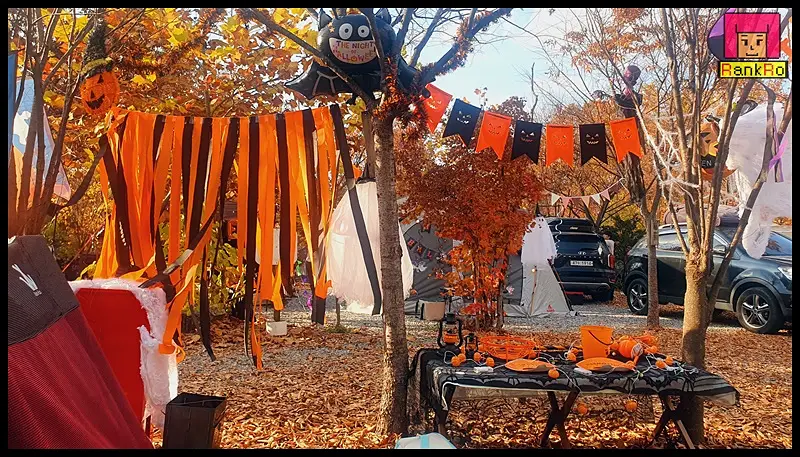 ▼ 여기저기 할로윈장식으로 분위기를 내는 포천캠핑장 몬테비얀코 모습입니다.