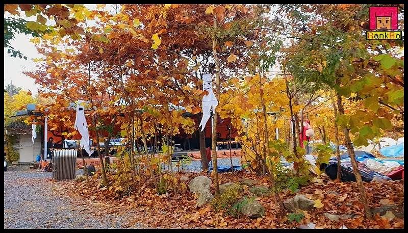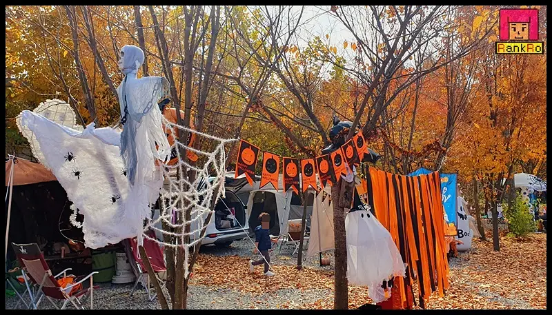 ▼ 가을옷을 입은 캠핑장 곳곳에 할로윈장식들이 반겨주고 있습니다.