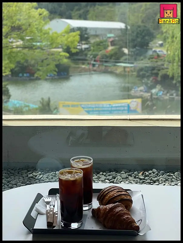 ▼ 건물 곳곳이 다양한 뷰를 감상할 수 있는 공간이 마련되어 있는 상두그레이입니다. 2층은 모든 공간을 답답하지 않게 통창을 내어 개방감이 좋았으며 그 창 너머 낚시터 호수뷰를 바라보며 조용하게 즐길 수 있었어요.
