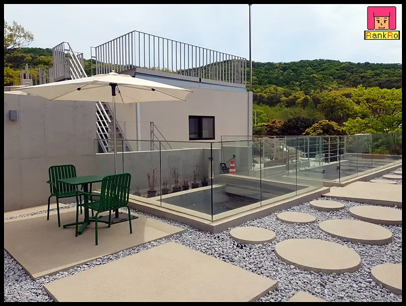 ▼ 둘러 걷다 보면 포토존이 되는 김포카페 상두그레이. 대형카페를 선호하는 편은 아니지만 이곳은 초록초록한 산속 힐링뷰를 만끽하기에 좋았어요.