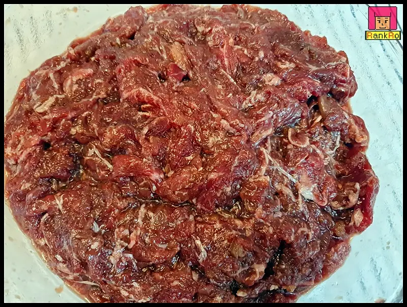 불고기양념 : 간장 10큰술, 참치액젓 2큰술, 맛술 2큰술, 설탕 2큰술, 다진 마늘 2큰술, 참기름 1큰술