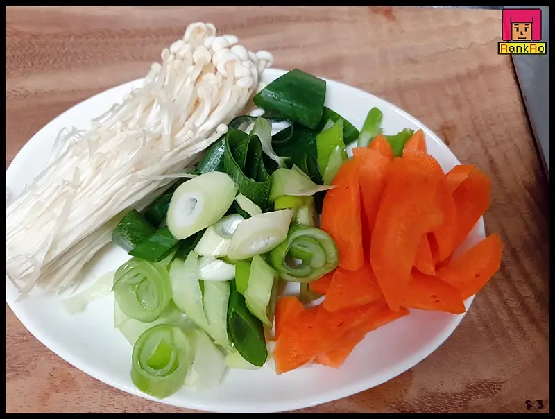 ▼ 소불고기 양념이 잘 배어지는 동안 소불고기 황금레시피에 들어가는 야채를 잘라 준비합니다.