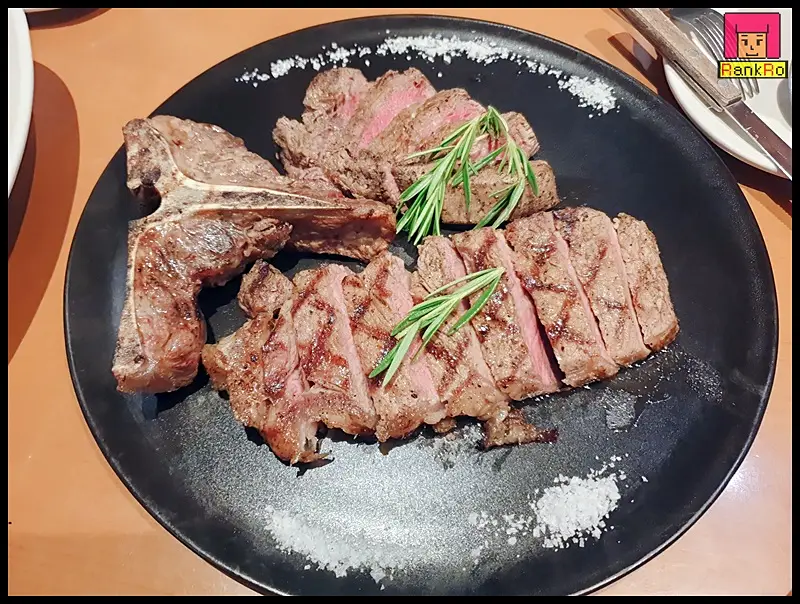 ▼ 오늘의 메인 아웃백스테이크하우스의 퍼펙트본인스테이크 포터하우스스테이크가 나왔어요. 부드러운 안심과 풍미 가득한 등심을 한 번에 즐길 수 있는 아웃백 포터하우스 스테이크입니다.