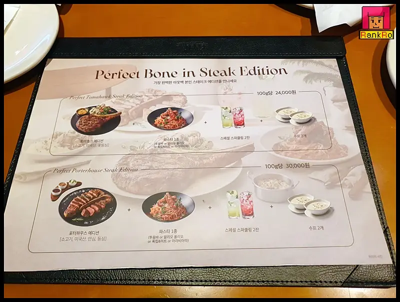 ▼ 아웃백 메뉴추천으로 퍼펙트 본인 스테이크 에디션입니다. 푸짐하면서 맛있게 먹을 수 있는 아웃백 토마호크 에디션과 포터하우스 에디션으로 토마호크나 포터하우스를 선택하면 파스타 1종, 스페셜스파클링 2잔, 수프 2개의 든든하면서 알찬 구성으로 가족과 함께 먹을 수 있는 아웃백 세트메뉴구성입니다.