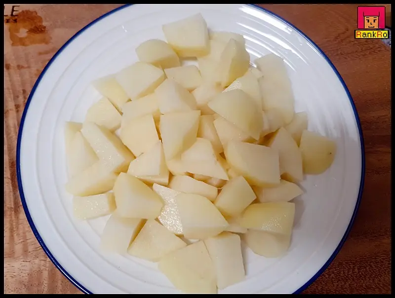 ▼ 감자 크기에 따라 세로로 자른 후 먹기 좋은 크기로 기호에 맞게 깍둑썰기로 준비합니다.