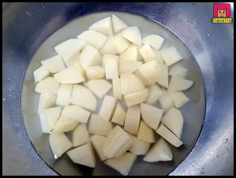 ▼ 먹기 좋게 자른 감자는 물에 휑궈 전분기를 제거합니다. 전분기가 남아 있으면 감자조림의 식감이 푸석해질 수 있으면서 감자끼리 엉겨 붙거나 눌어붙지 않으니 두어 번 씻어 준비해 주세요.
