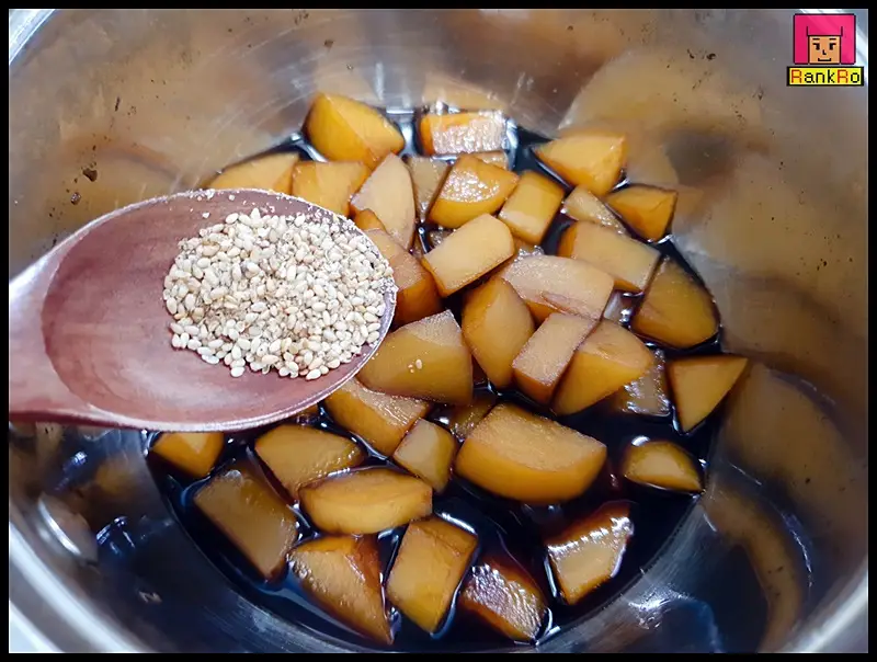 ▼ 마지막으로 간장 감자조림 레시피에 고소한 깨소금 1/2큰술 넣어 주세요.