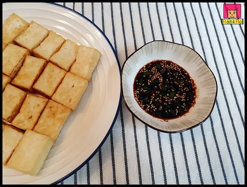 두부부침양념장 : 진간장 2큰술, 맛술 1큰술, 식초 1/2큰술, 설탕 1/2큰술, 참기름 1/2큰술, 깨소금 1/2큰술, 파 조금
