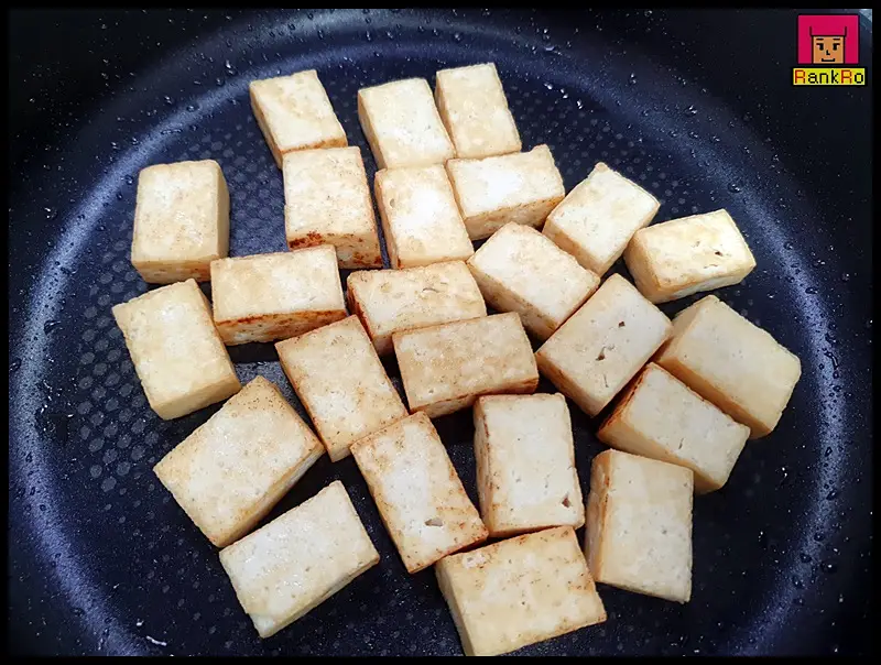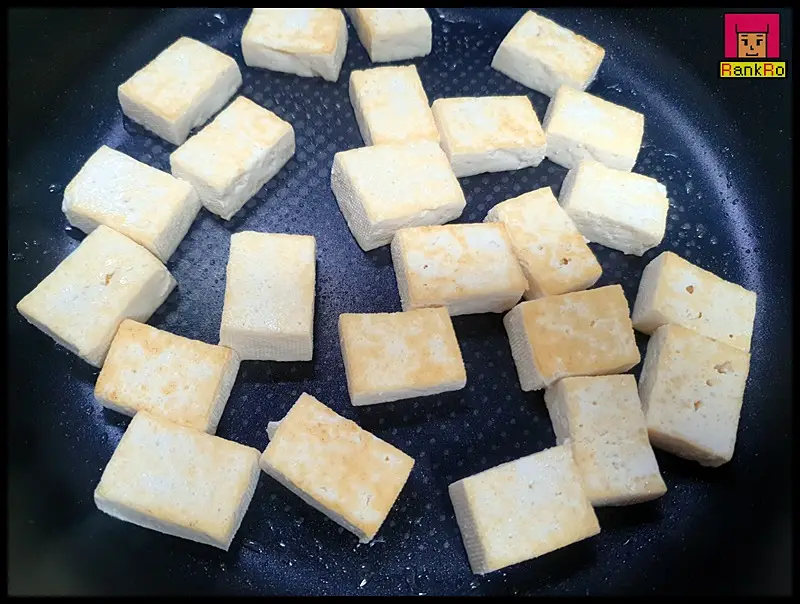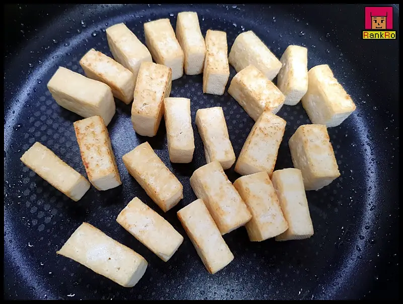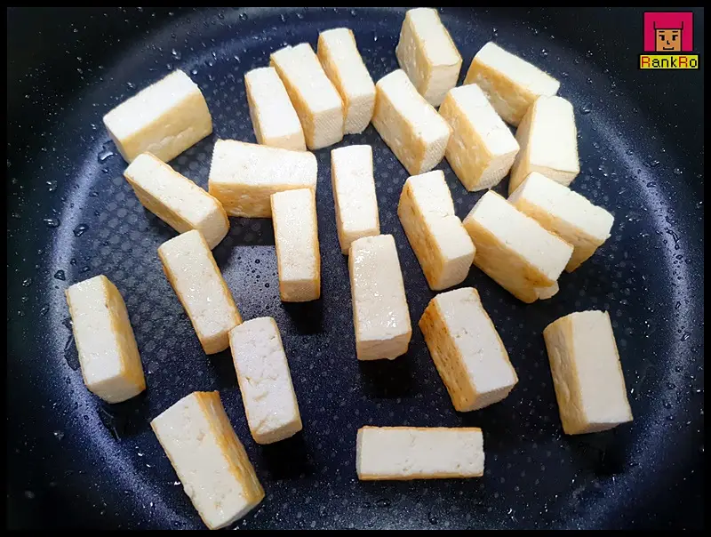 ▼ 강불과 중불사이 두부를 앞 뒤로 노릇노릇 구워 주세요. 전체적으로 노릇노릇 먹음직스러운 색으로 바뀐다면 뒤집어 반대편 면도 구워주면 됩니다. 기름이 부족하다면 더 넣어 주세요.